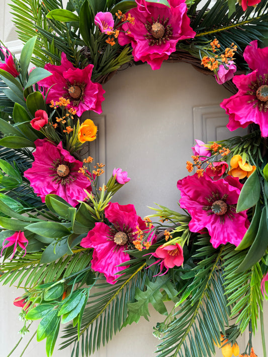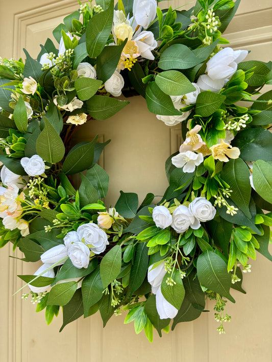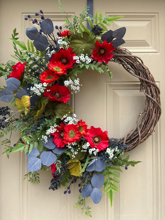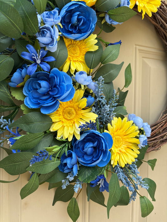 Yellow Daisy and Blue Ranunculus Summer Wreath